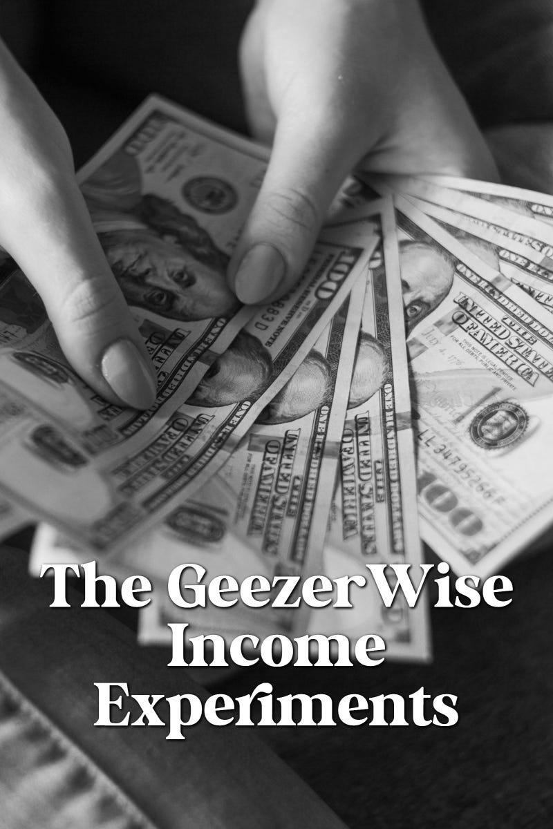 I’m calling it The GeezerWise Income Experiments.