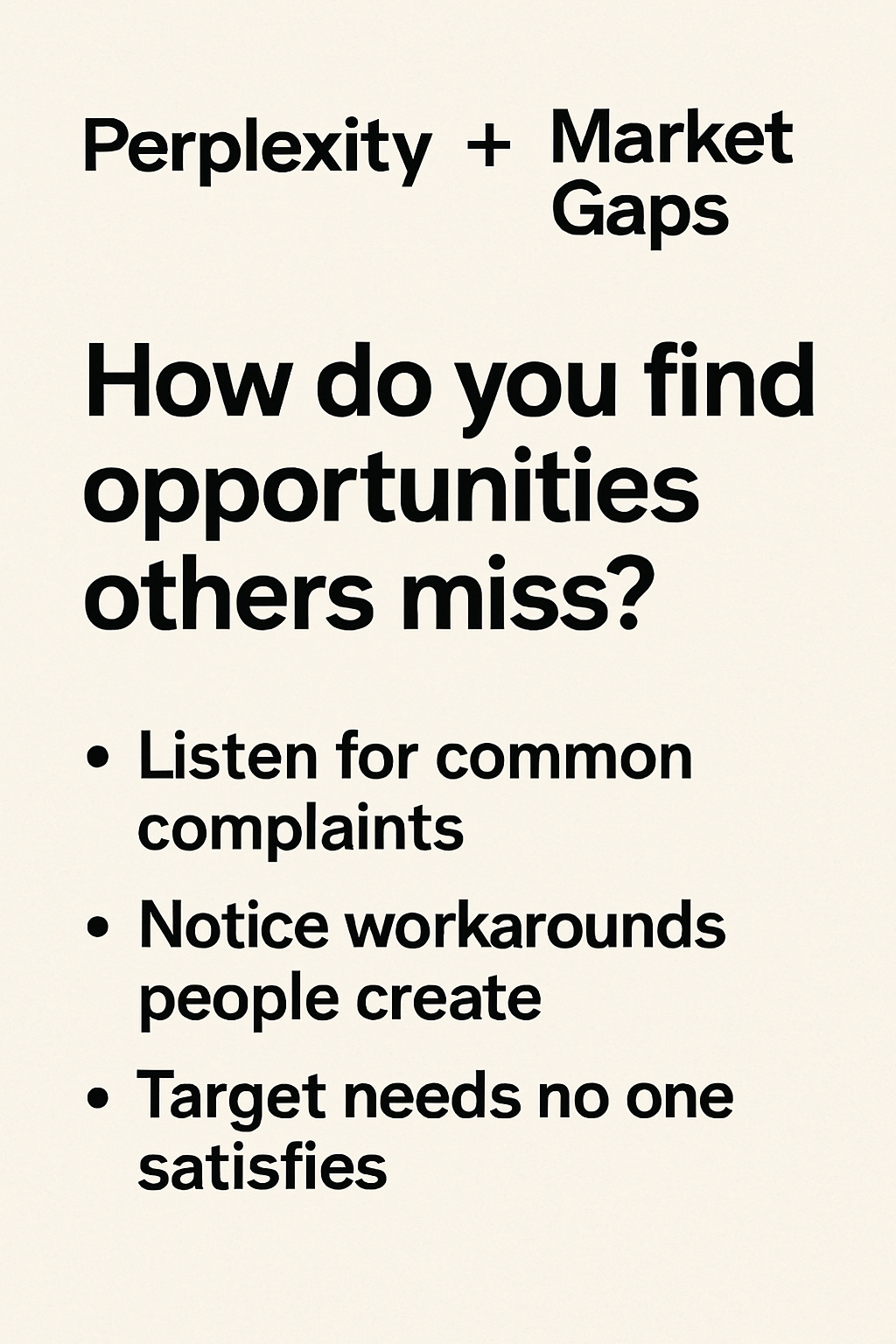 With Perplexity, you can find those cracks, step in with a better solution, and turn them into a competitive advantage.