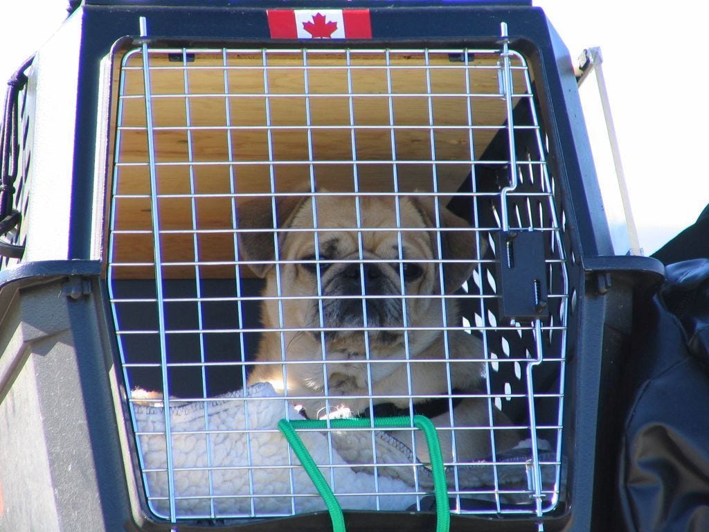 I built him a crate. Not just any crateāa custom one with a Plexiglas windscreen, so Cody could see me.