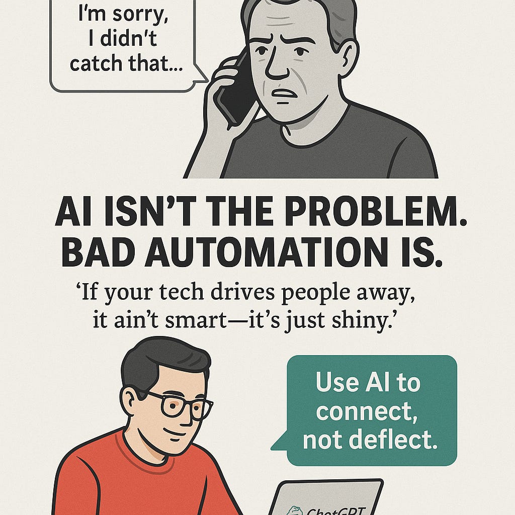 Bad AI is like a voicemail loop from 2003 with a shinier skin.