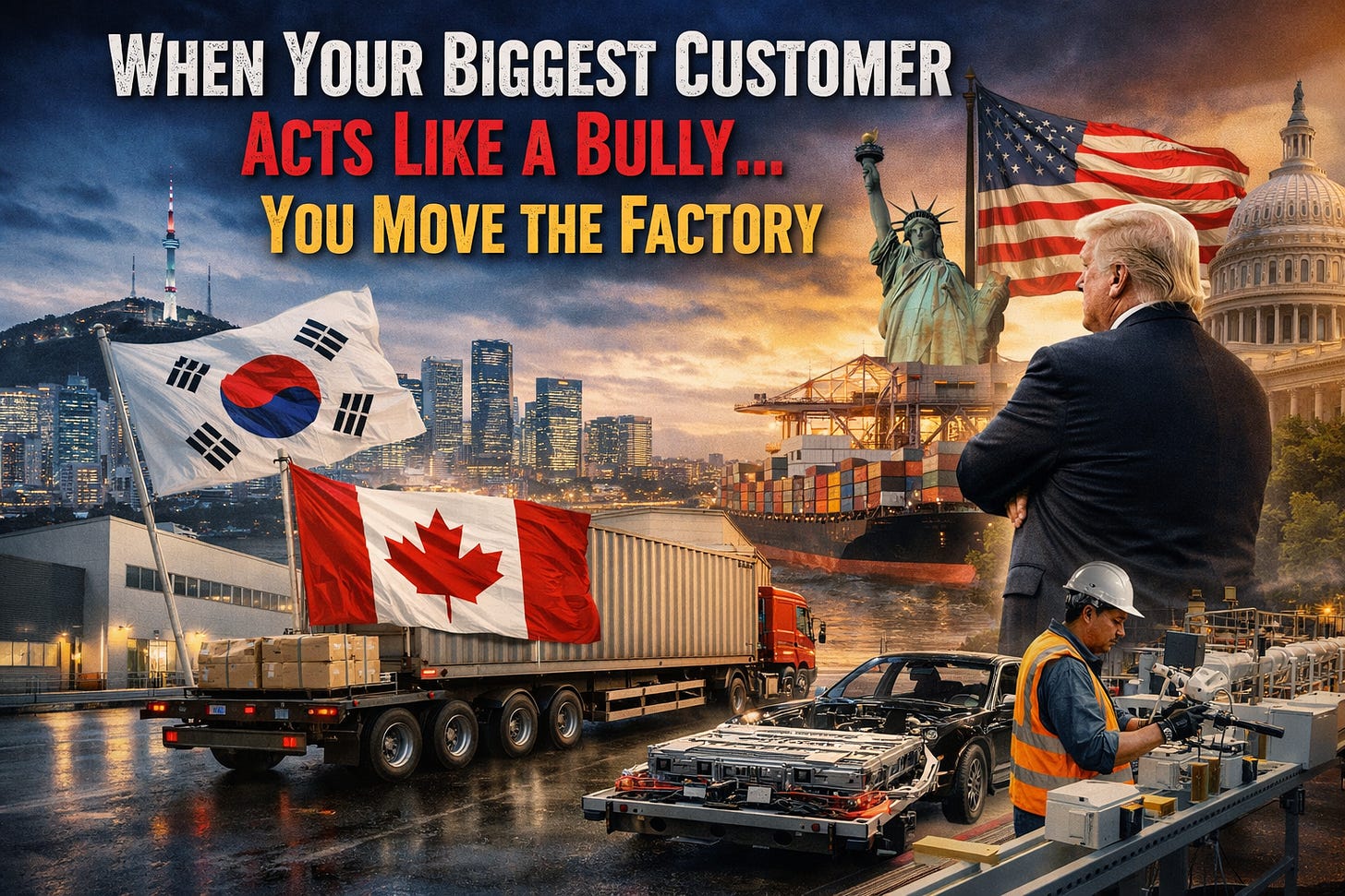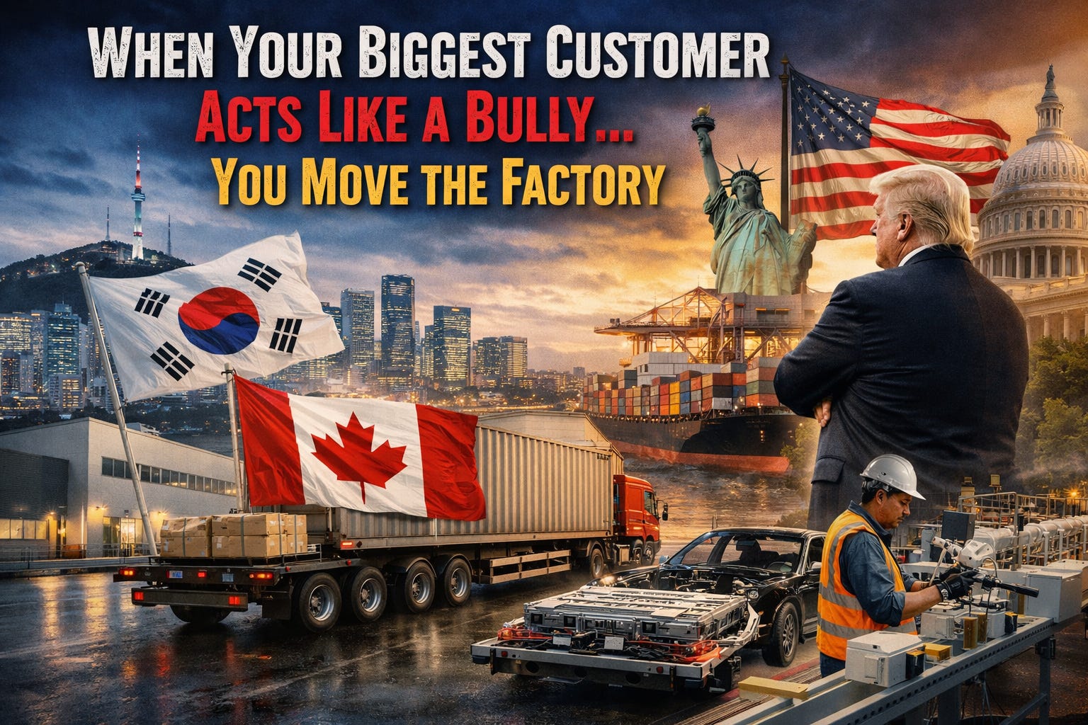 While Trump was floating 25% tariffs on Korean goods, Canada and Seoul signed an agreement to shift real manufacturing north.